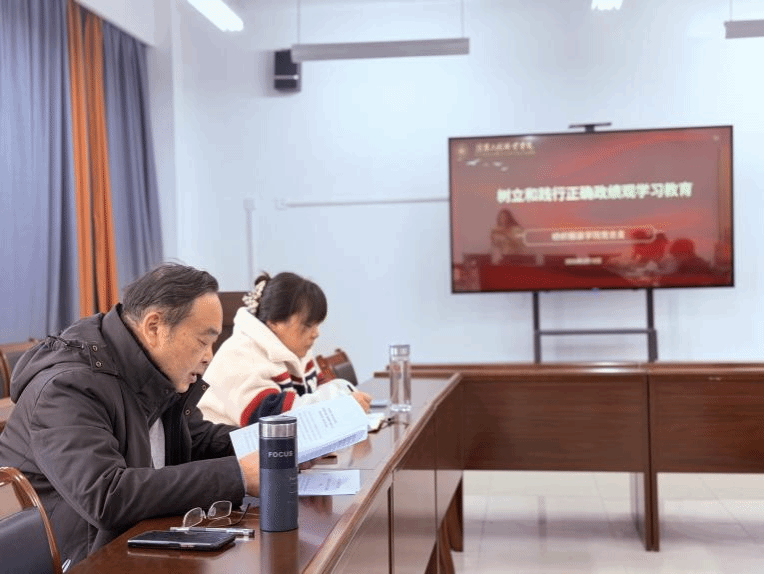 会上集体学习了习近平总书记关于树立和践行正确政绩观的重要论述,以及《为人民出政绩 以实干出政绩》《让愿担当、敢担当、善担当蔚然成风》核心内容,传达了学校党委书记吴海涛在部署全校开展“树立和践行正确政绩观学习教育”会议上的重要讲话精神。