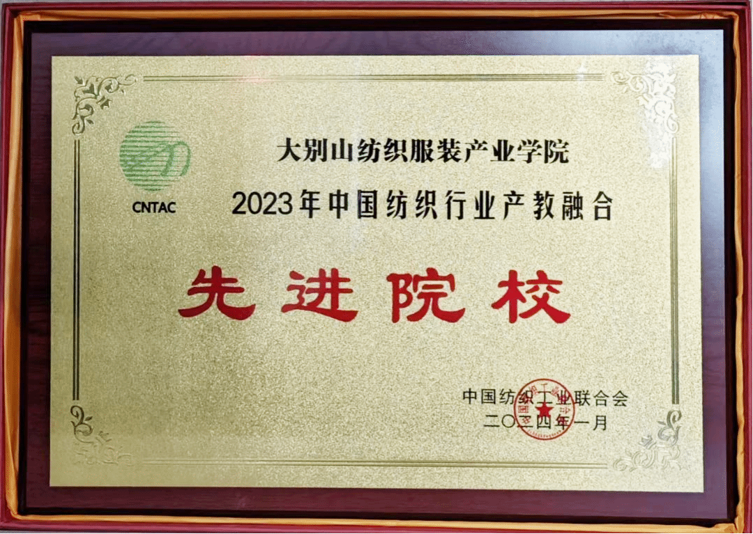 产业学院2023年荣获中国纺织工业联合会授予的“中国纺织行业产教融合先进院校”荣誉称号。