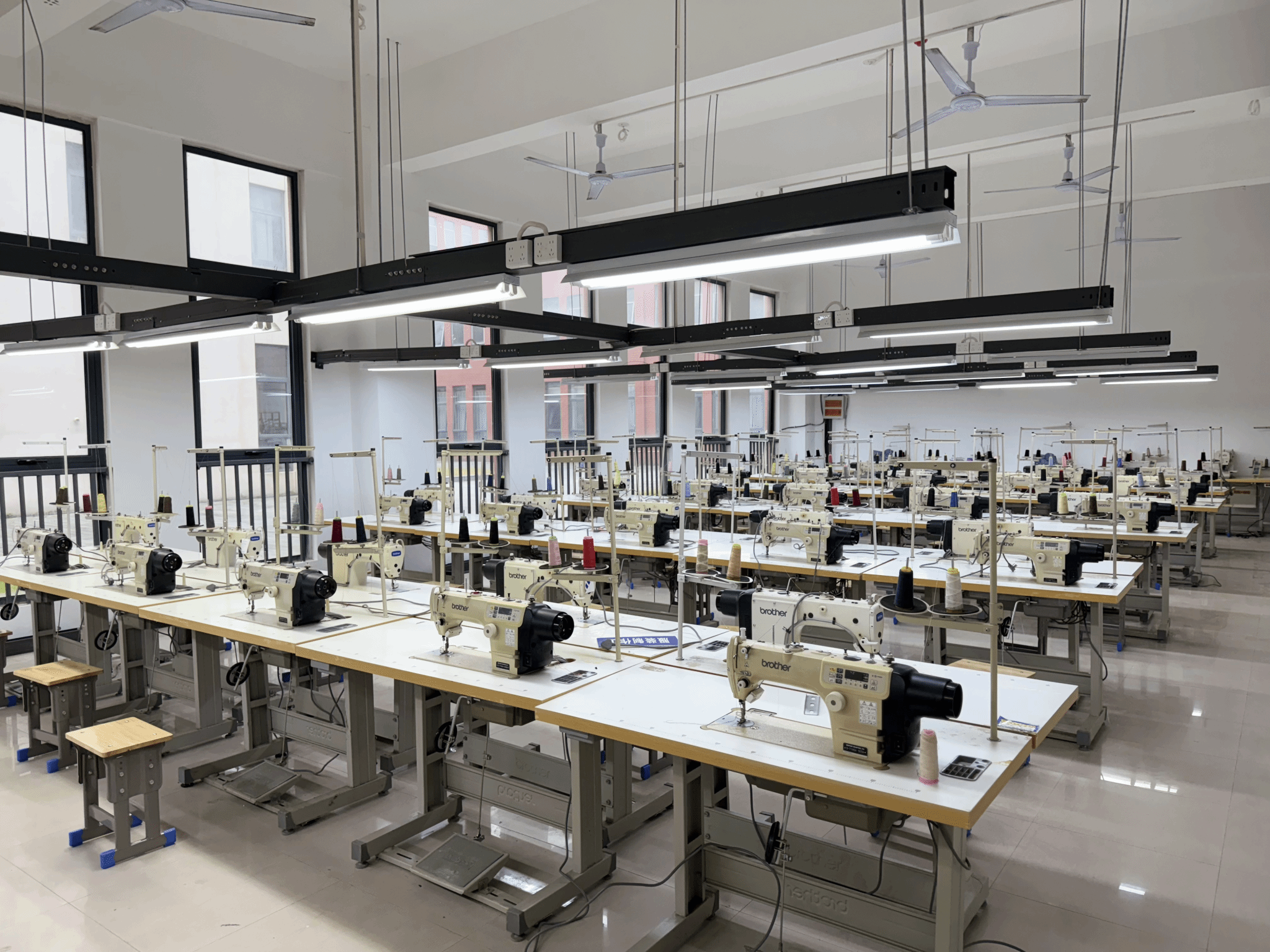 室内配备电脑平缝机、高速电脑包缝机、专业烫台及智慧教学屏,构成了从裁剪、缝纫、锁边到整烫的完整服装制作流程。学生将制版实训室完成的纸样转化为真实成衣,通过操作各类专业设备,系统掌握现代服装生产的核心工艺与质量标准。