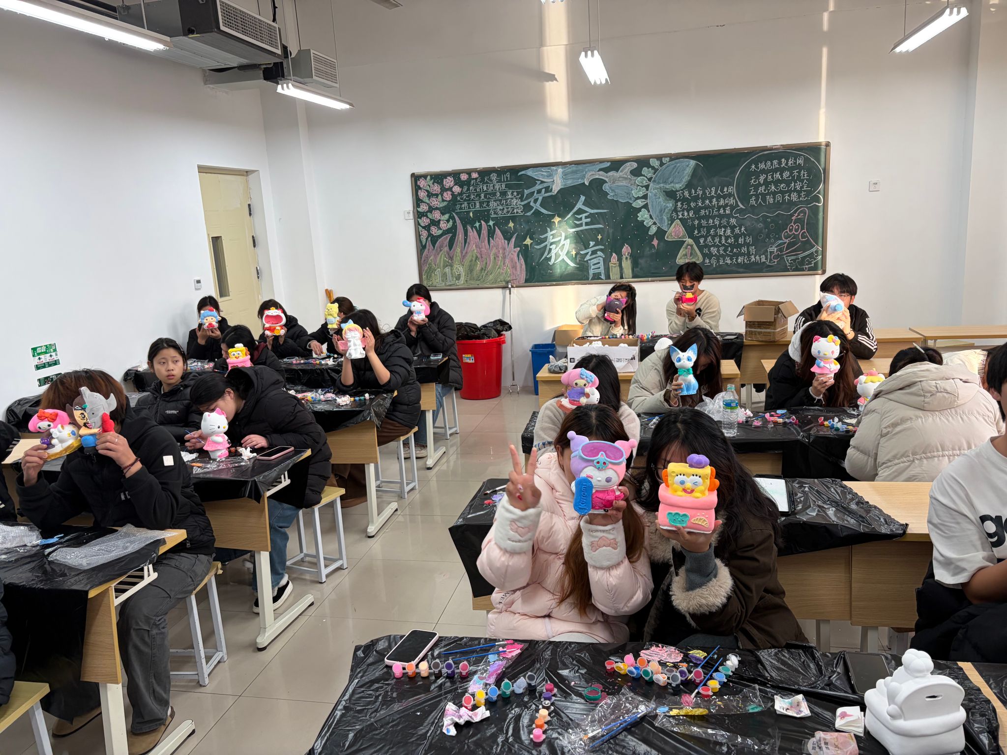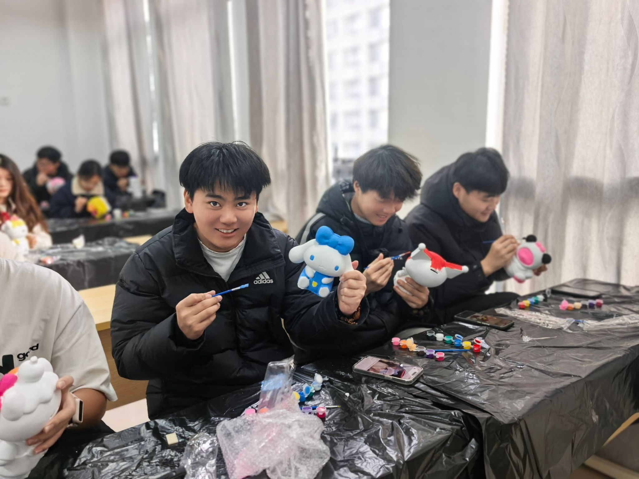 为丰富校园文化生活,培养同学们的动手实践能力与创新思维,1月10日下午14:30纺织服装学院在24级纺织机电二班内举办彩绘石膏娃娃比赛,本次比赛以“创意无界,色彩飞扬”为主题,吸引了系部学生踊跃参与,现场洋溢着童真与创意交织的欢乐氛围。