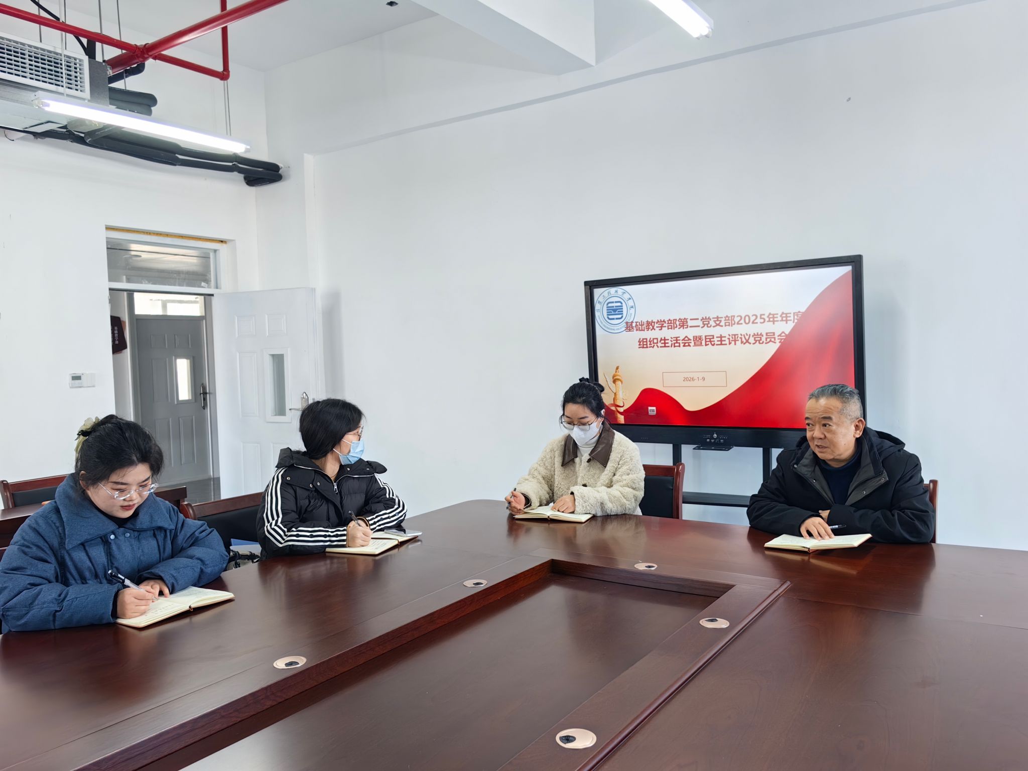 2026年1月9日下午三点,基础教学部第二党支部召开2025年度组织生活会暨民主评议党员会。党支部成员聂雪萍、雷鸣、曹明贵、汪蝶参会,会议由支部书记聂雪萍主持。