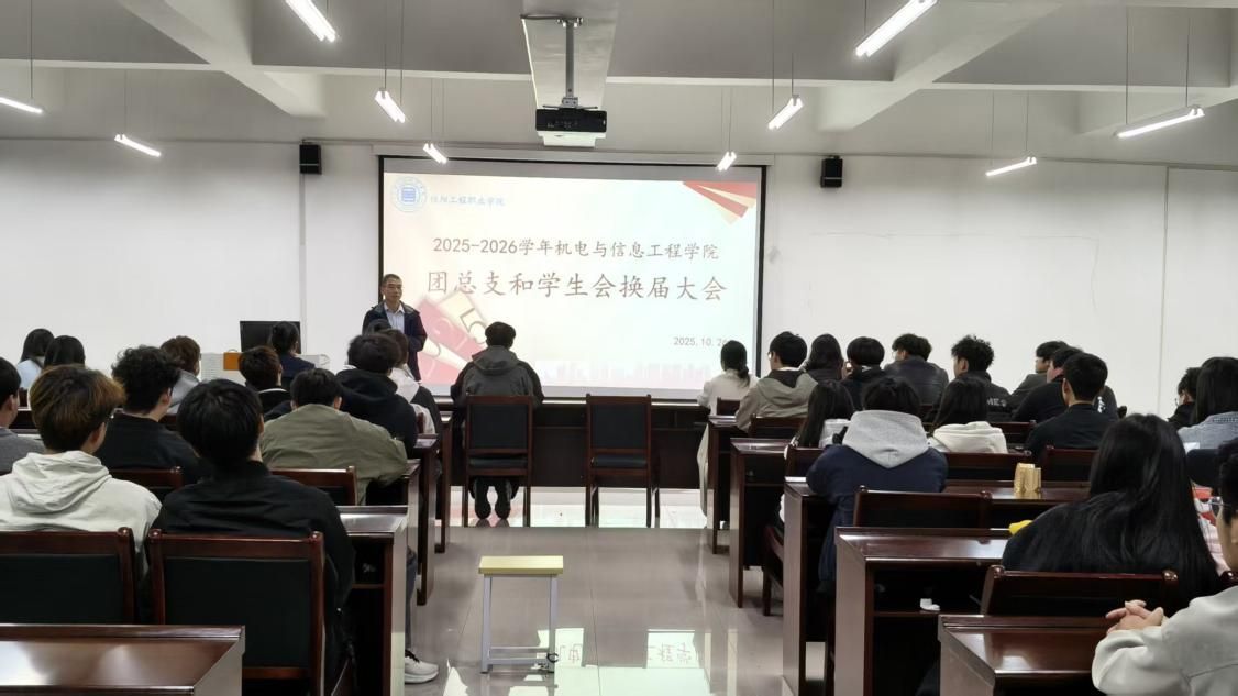 10月26日机电与信息工程学院举行了2025-2026学年团学学生干部换届大会。文琳副院长及全体辅导员老师出席了仪式。