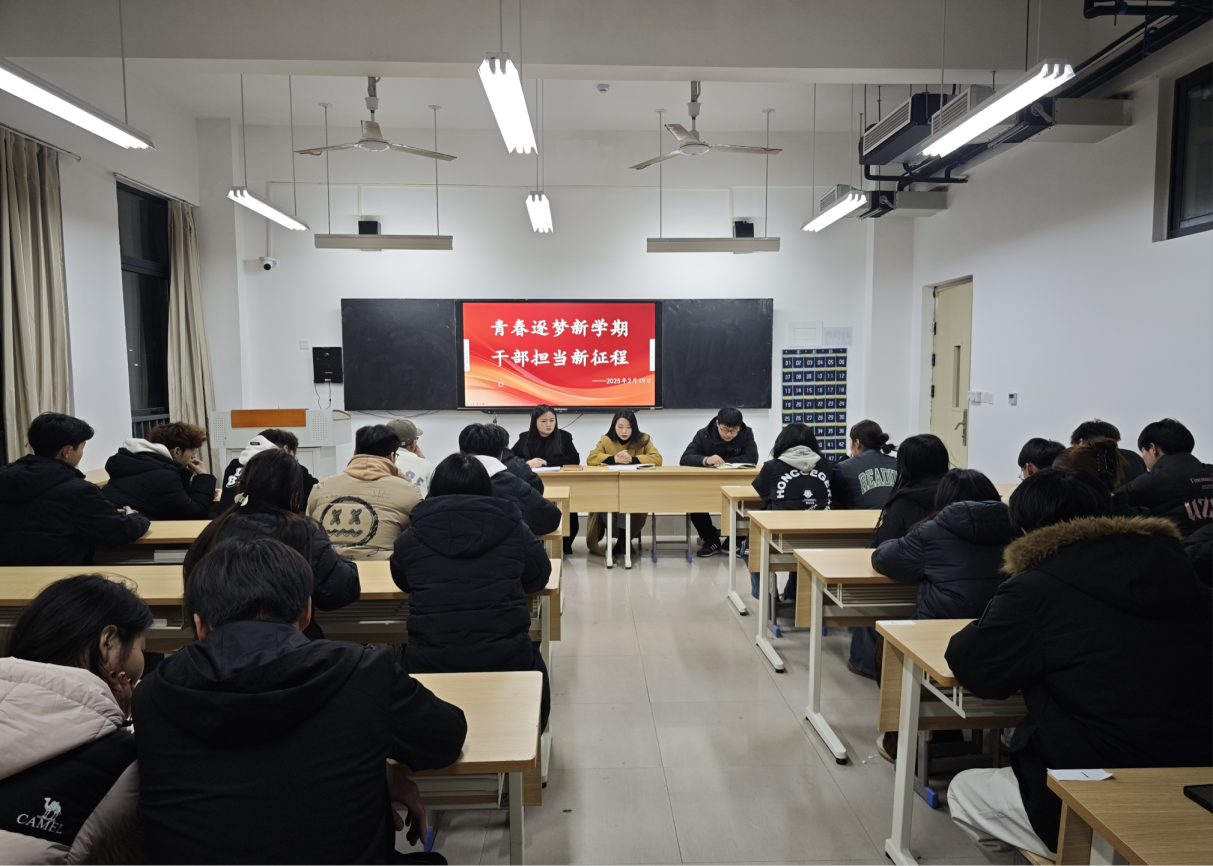 2月19日晚,学院经济与艺术系召开了以"青春逐梦新学期,干部担当新征程" 为主题的学生干部工作会议。系学工主任胡广群、教学主任孙世力及全体学生干部齐聚一堂,共同谋划新学期学生工作。