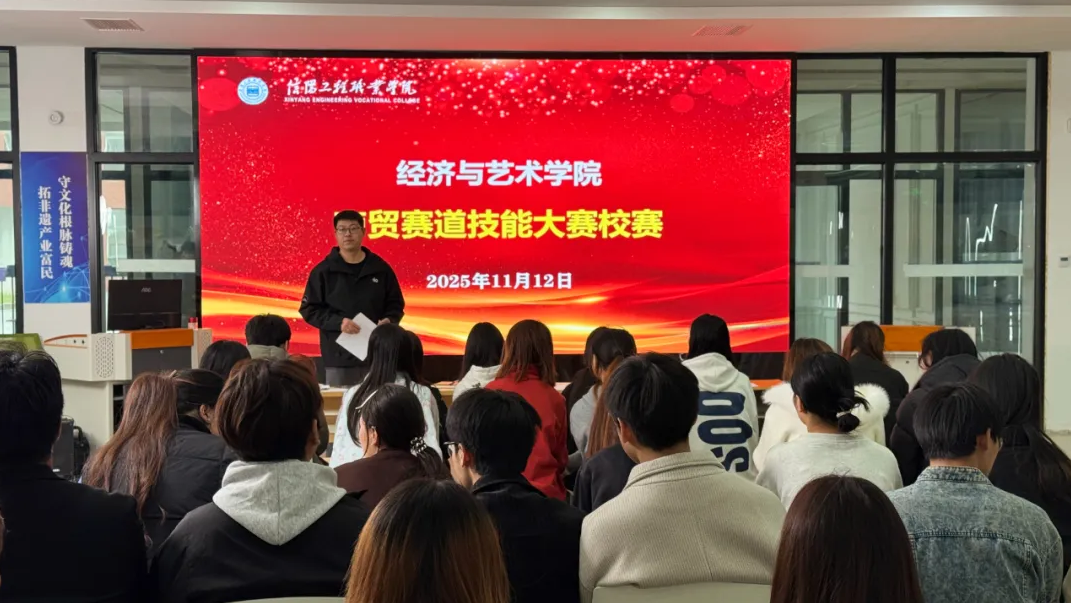 11月12日下午,信阳工程职业学院经济与艺术学院电商直播大厅内灯火璀璨、气氛热烈,由经济与艺术学院承办的校赛—商贸赛道技能大赛圆满落幕。本次大赛紧扣“数字经济与非遗出海”主题,10支来自24级跨境电子商务专业的精英团队同台竞技,充分展现了学子们在新业态下的综合实战能力。