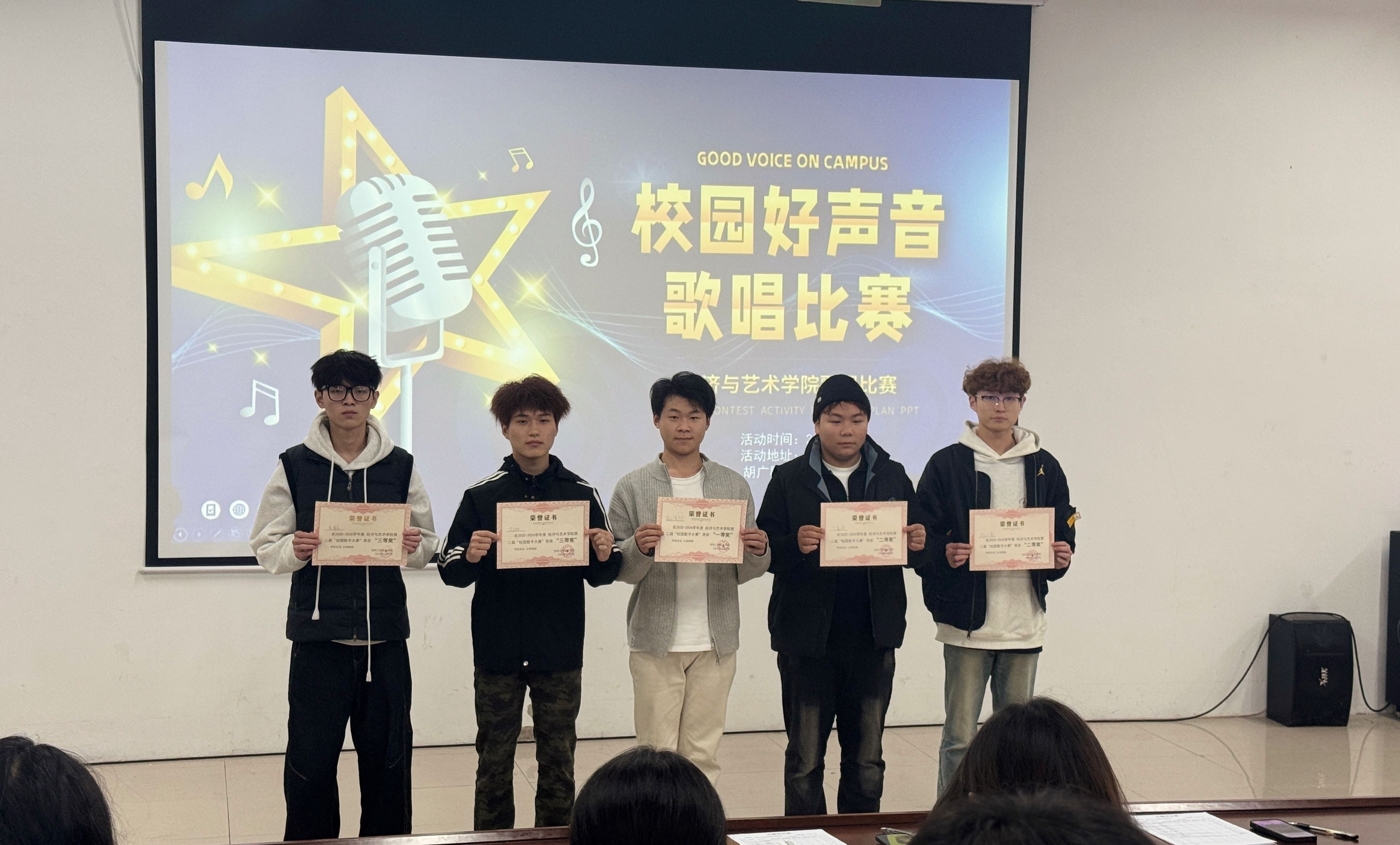 在阵阵热烈掌声中,《校园好声音,歌唱比赛》经济与艺术学院歌手选拔比赛圆满落下帷幕。本次比赛不仅为同学们提供了展现自我、施展才华的舞台,也充分展现出大学生积极向上、勇于表达的精神风貌,进一步丰富了校园美育教育的内涵。愿所有参赛选手能从这次经历中获得成长,也希望每一位同学都能在歌声中汲取力量,勇敢前行。