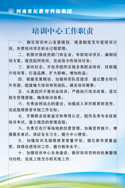 一、制定培训中心发展规划、规章制度及年度培训计划,负责培训项目的全过程管理;