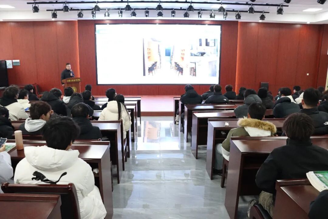 会议伊始,美芝精密公司企业管理部崔贯勋部长作为主讲人,通过企业宣传片和翔实的PPT,向同学们全面展示了美的集团及安徽美芝精密制造有限公司的发展历程、产业布局以及核心优势。作为全球家电行业的领军企业,美的集团美芝精密始终专注于科技创新。他着重进行了三方面的介绍:一是岗位需求,详细阐述了实习岗位的具体职责以及专业技能要求;二是职业发展,展现了企业完善的“传帮带”导师制度和清晰的晋升通道;三是薪酬福利,公布了极具竞争力的实习薪资、食宿条件以及丰富多彩的企业文化活动