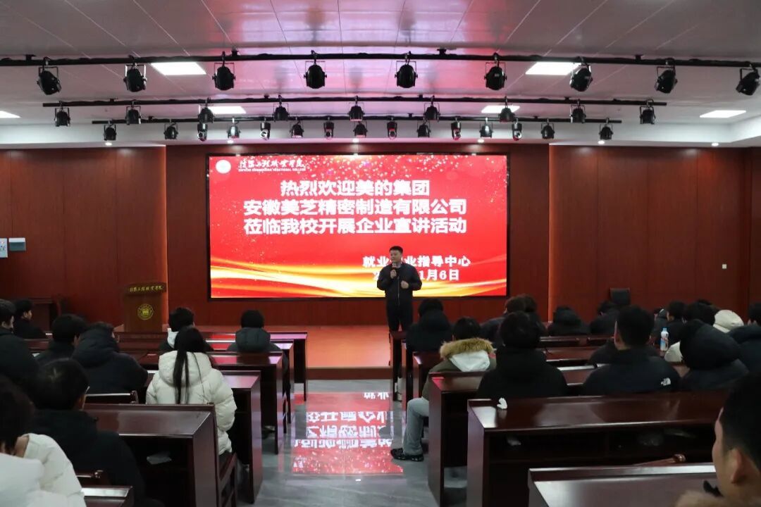 1月6日上午,美的集团安徽美芝精密制造有限公司实习宣讲会在信阳工程职业学院毕昇楼阶梯教室圆满举行。本次活动面向机电与信息工程学院2024级学生,旨在搭建校企合作平台,为学生构建从校园迈向职场的实践桥梁。