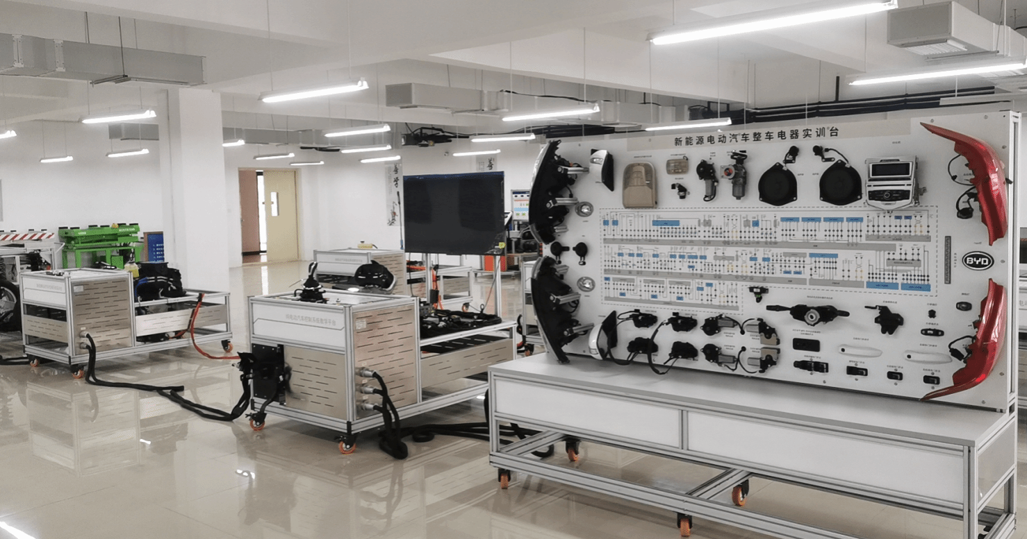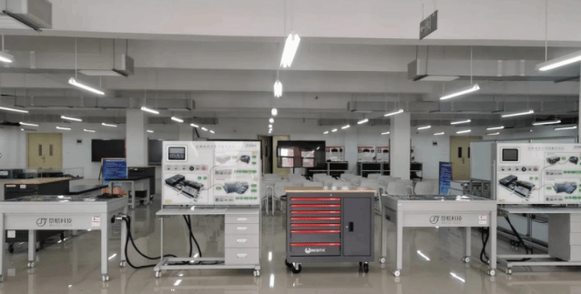 新能源汽车技术专业建有电力电子基础实训室、新能源汽车动力系统实训室、虚拟仿真实训室、整车实训中心(含底盘、AI故障诊断实训)新能源汽车电气及电控实训室等,实训设备价值830余万元。