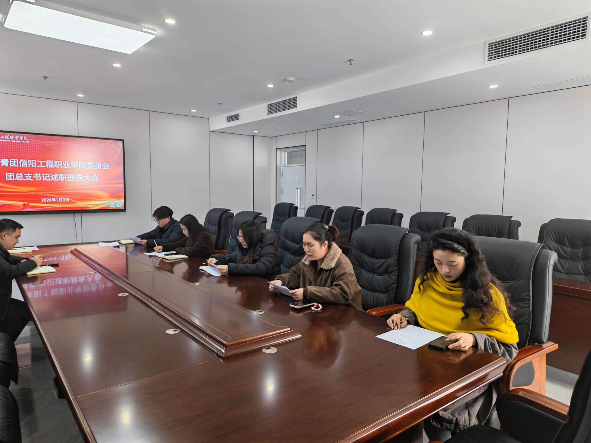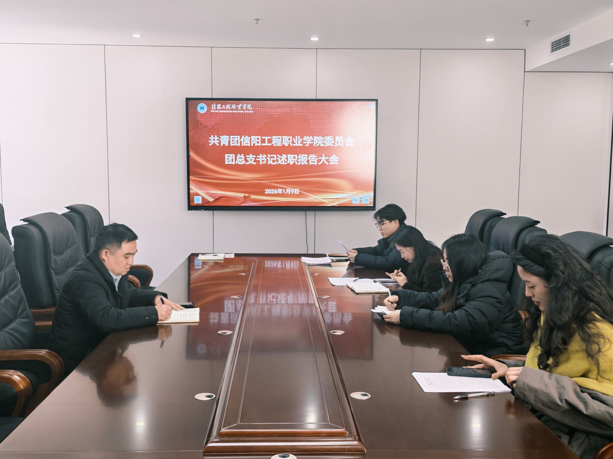 为深入学习贯彻习近平总书记关于青年工作的重要思想,全面落实从严治团要求,压实基层团组织工作责任,搭建互学互鉴、比学赶超的工作平台,近日,信阳工程职业学院2025年度二级学院团总支书记述职报告会在学校会议室隆重召开。校团委全体成员及各二级学院团总支书记参加会议,会议由校团委书记主持。