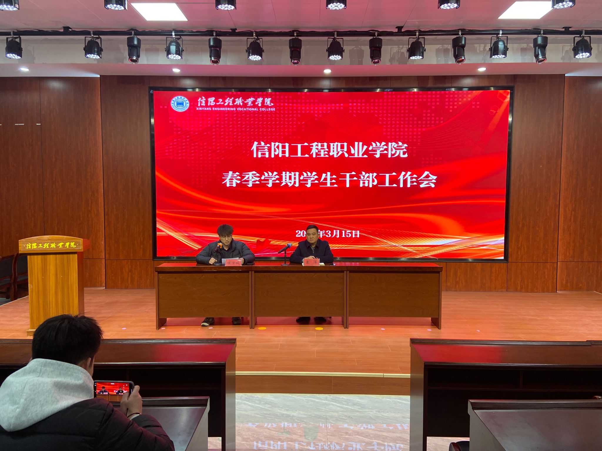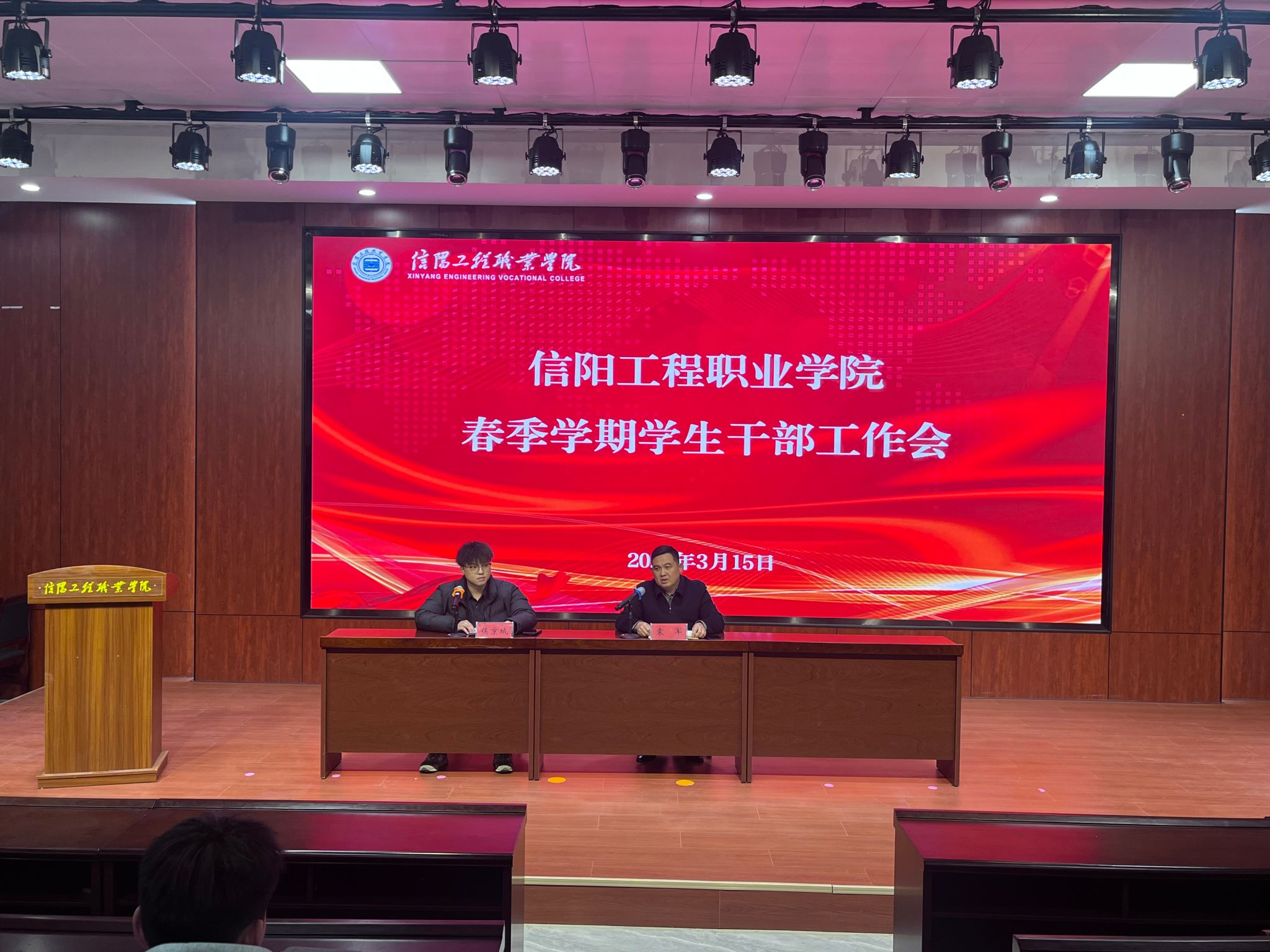 3月15日晚,我校2026年春季学期学生干部工作会顺利召开,会议全面总结过往团学工作成效,系统部署新学期工作任务,进一步强化学生干部队伍建设,明确学生干部履职要求与成长发展方向。校团委书记袁军、团委副书记侯京城出席会议并讲话,全体班长、团支书,各二级学院主席团成员及各社团社长参加本次会议。