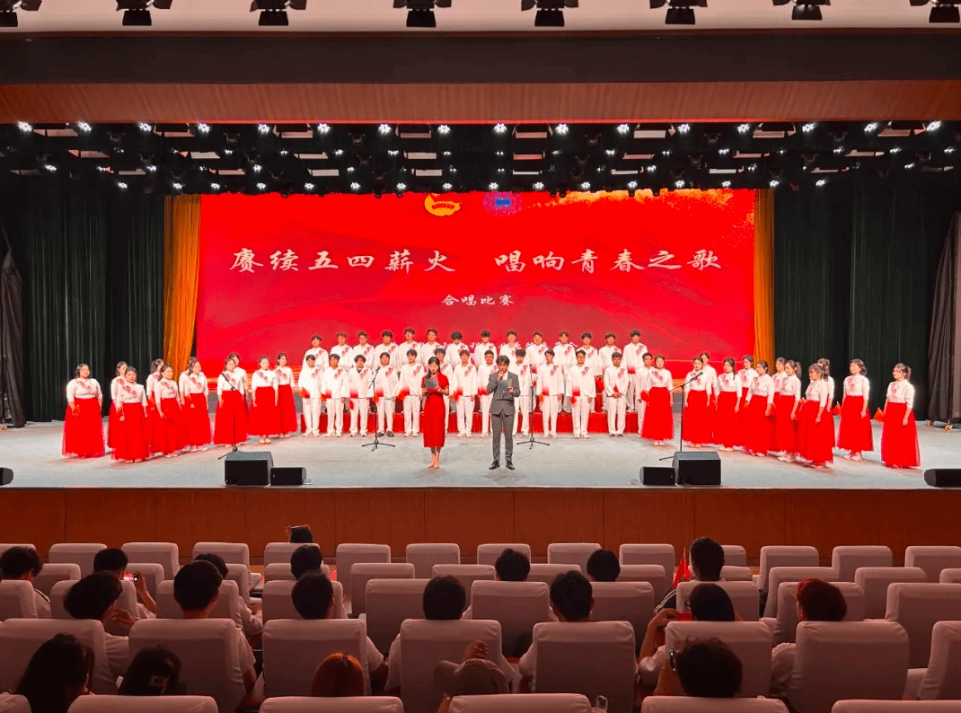 为传承五四精神,凝聚青春力量,4月28日晚,信阳工程职业学院2025年“赓续五四薪火,畅享青春之歌”五四青年节合唱比赛在学校百花厅隆重举行。学校党委副书记许松,副校长、工会主席徐俊杰,学生处处长、团委书记袁军,学生处副处长张成武,团委副书记薛惠心和各系学管主任、专业教师以及近千名师生共同观看了这场青春盛宴。