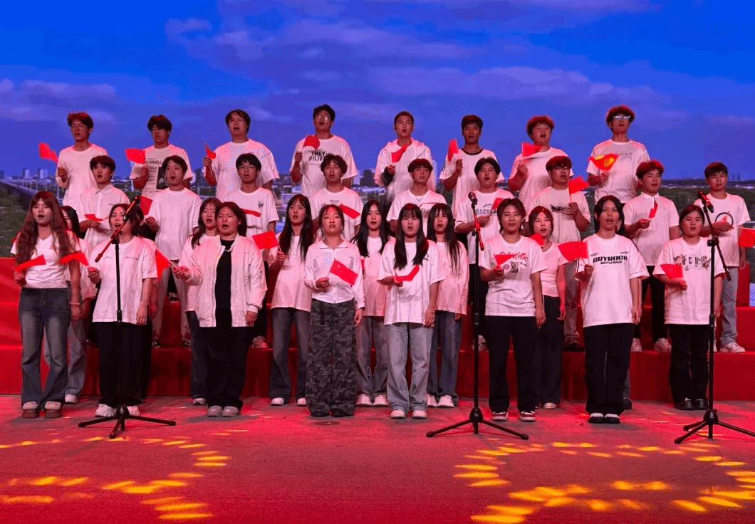 汽车工程系和纺织工程系并列三等奖。汽车工程系在《我爱你中国》中创新融入深情朗诵,让爱国之情更加真挚动人;纺织工程系的《强军战歌》以铿锵有力的节奏和红色灯光,营造出恢弘气势,瞬间将现场氛围推向高潮。