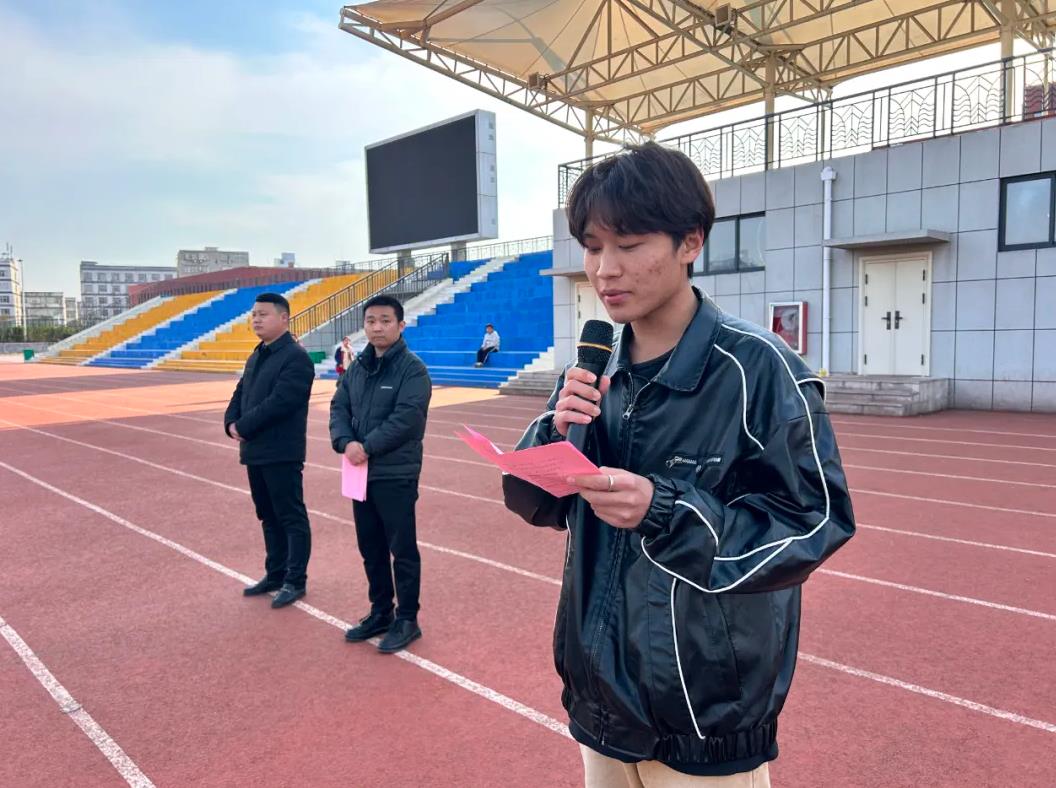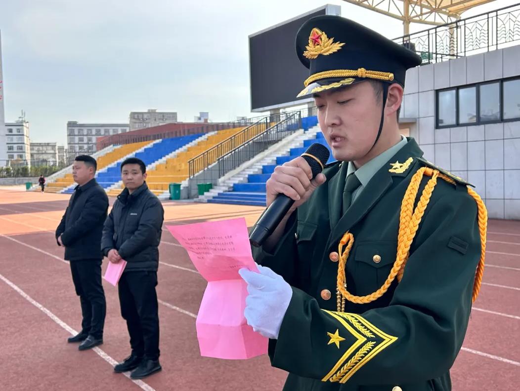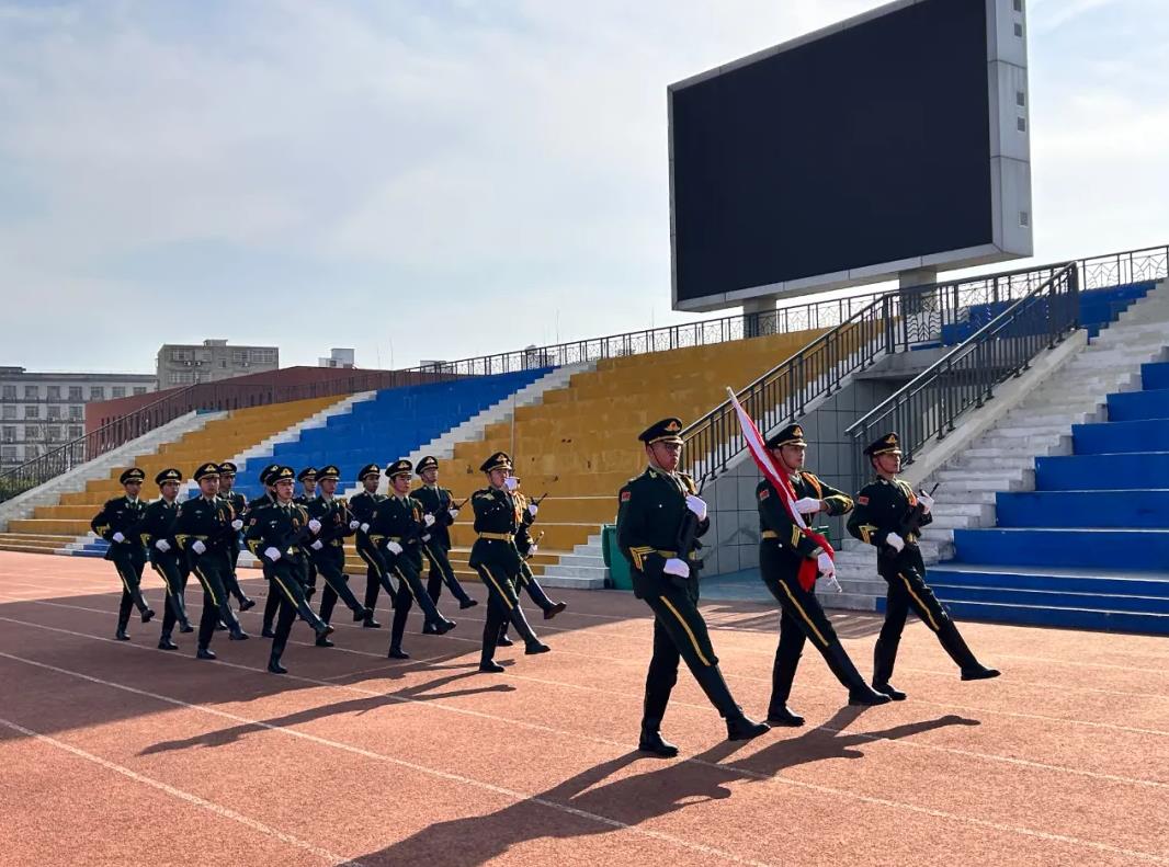 仪式在中国人民解放军军歌声中拉开帷幕,校国旗护卫队迈着铿锵有力的步伐向主席台走来,队员们身姿挺拔,英姿飒爽,伴随嘹亮的《义勇军进行曲》,五星红旗冉冉升起,全体应急队员向国旗行注目礼。应急救援队队员赵景涛、张佳乐作为代表庄严宣誓:我们将恪守“生命至上 安全第一”准则,通过系统化专业训练提升应急救援技能,定期开展实战演练,确保关键时刻拉得出、冲得上、打得赢,全力守护校园的和谐与稳定。