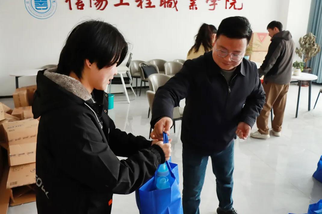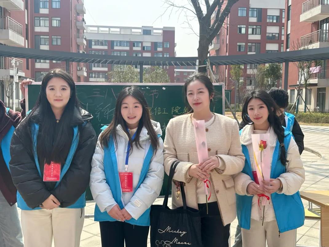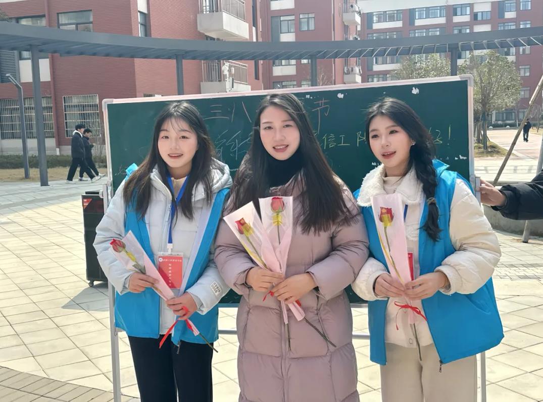 身着马甲的学生志愿者组成"鲜花使者团",携200束玫瑰花开展"芬芳信工"行动,送给食堂后厨、宿管员、辅导员,从后勤保障人员到三尺讲台,志愿者们将鲜花送至女性工作者手中。宿管员石阿姨捧着花束动情地说:"没想到孩子们记得我们的付出,这份心意比花更香!"