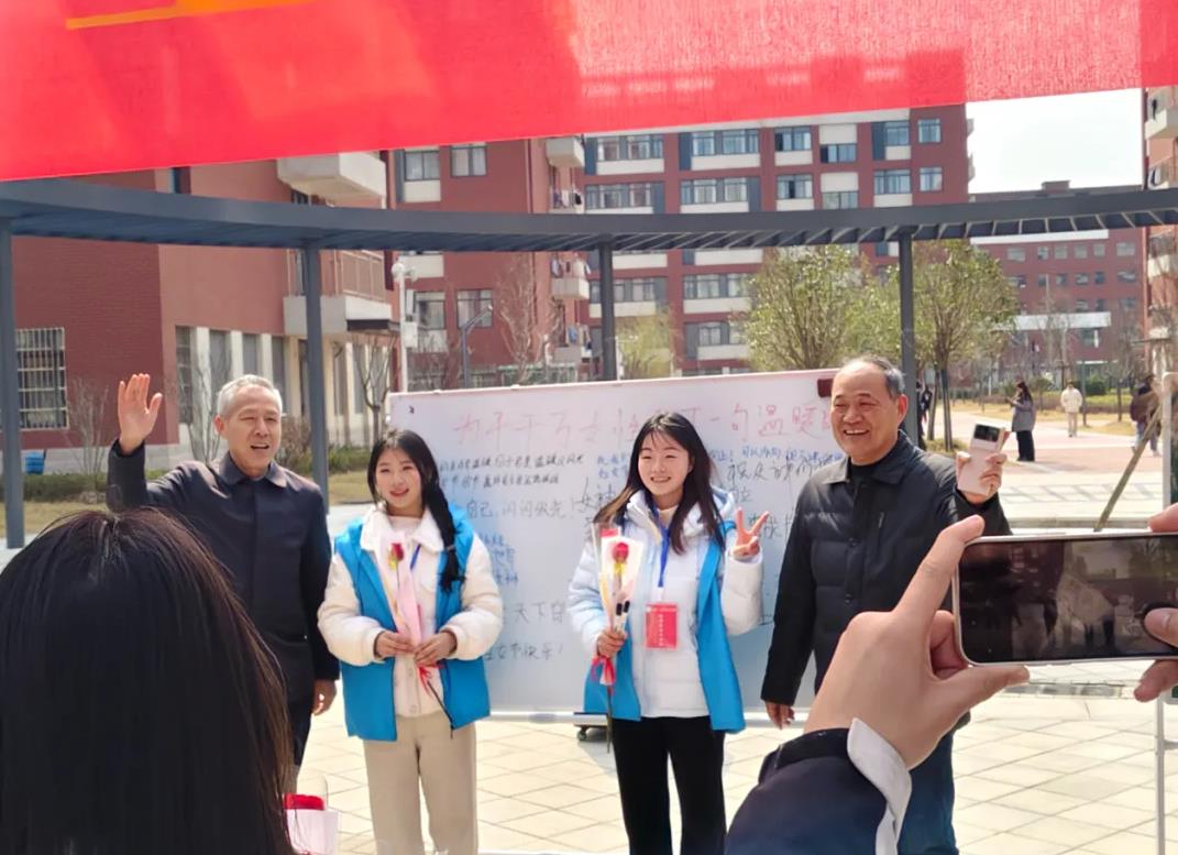 "师恩如春晖""妈妈我爱您""致敬校园守护者"......由女工部打造的"鲜花寄语长廊"成为校园热门打卡点。同学们通过手写贺卡、拓印花笺等创意形式,向女教师、宿管阿姨、食堂工作者等群体表达感恩。200余条温馨祝福签名缀满两块大展板,交织成春日最动人的情感画卷。