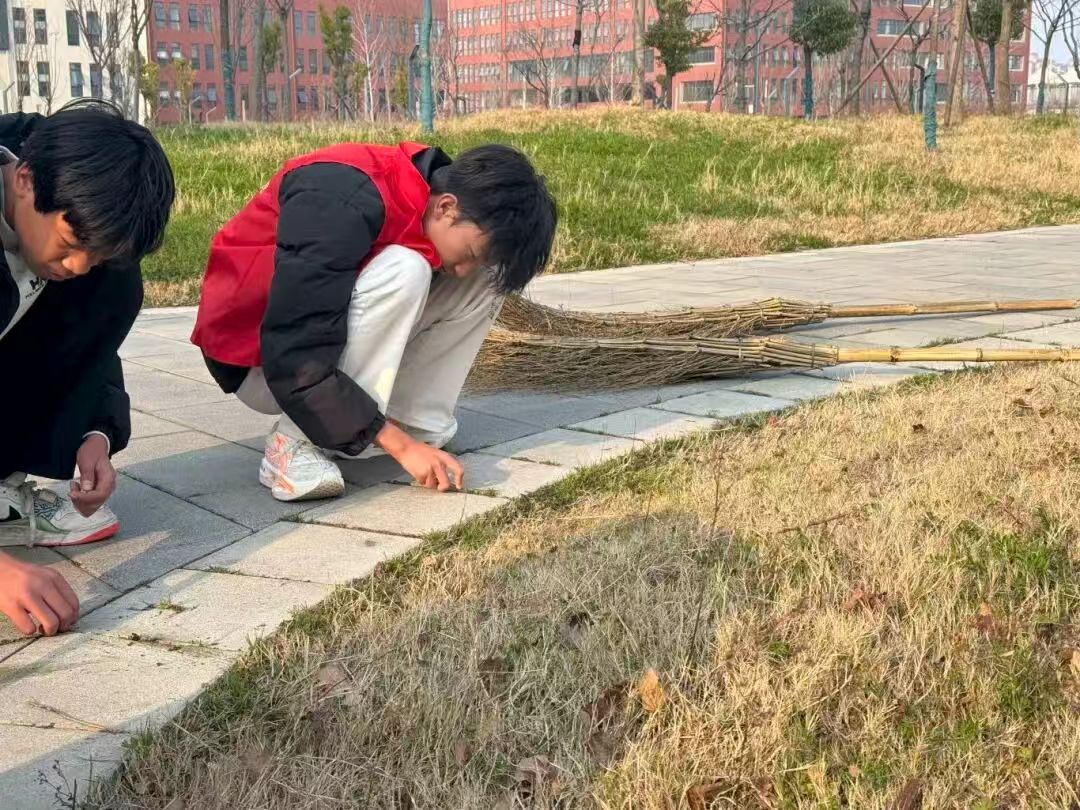 活动中,同学们热情高涨、干劲十足,纷纷奔赴各自的卫生区,以饱满的热情投入到劳动中,用双手守护校园洁净。