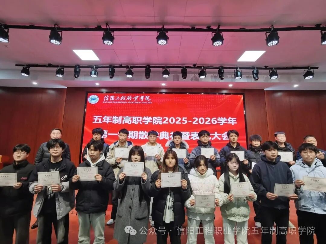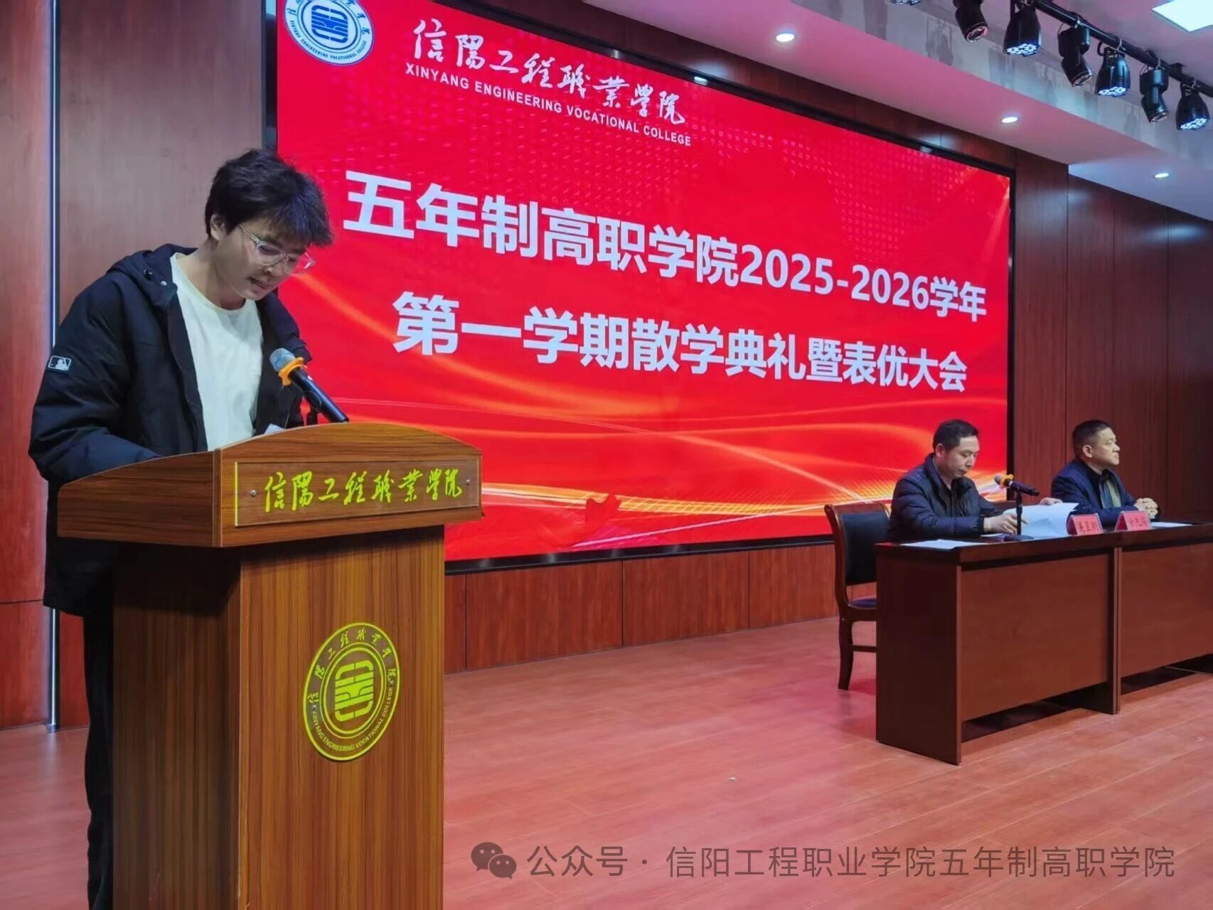近日,信阳工程职业学院五年制高职学院2025-2026学年第一学期散学典礼暨表优大会隆重举行。全院师生齐聚一堂,共同总结学期成果,表彰先进典型,为充实而圆满的学期画上了温暖的句号。
