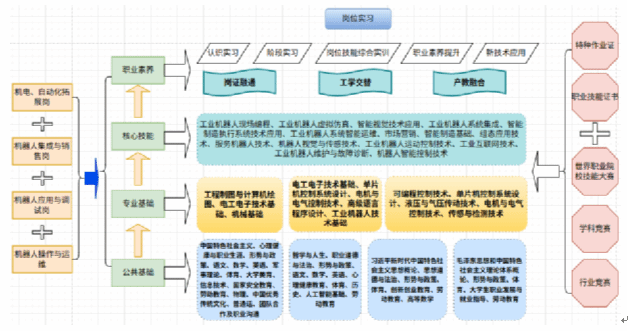 增设“智能制造概论”“人工智能基础应用”等前沿课程,强化工业机器人在安装与调试故障数据诊断分析、行业应用仿真建模等数字化工具应用,构建虚实结合的实训体系,适应工业机器人应用行业智能化发展需求。