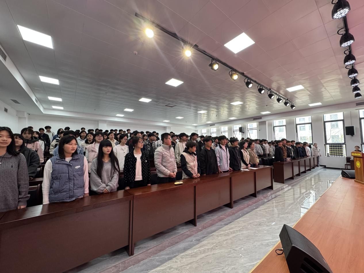 全体师生起立,高唱国歌,现场庄重肃穆,展现出信工院学子昂扬向上的精神风貌。