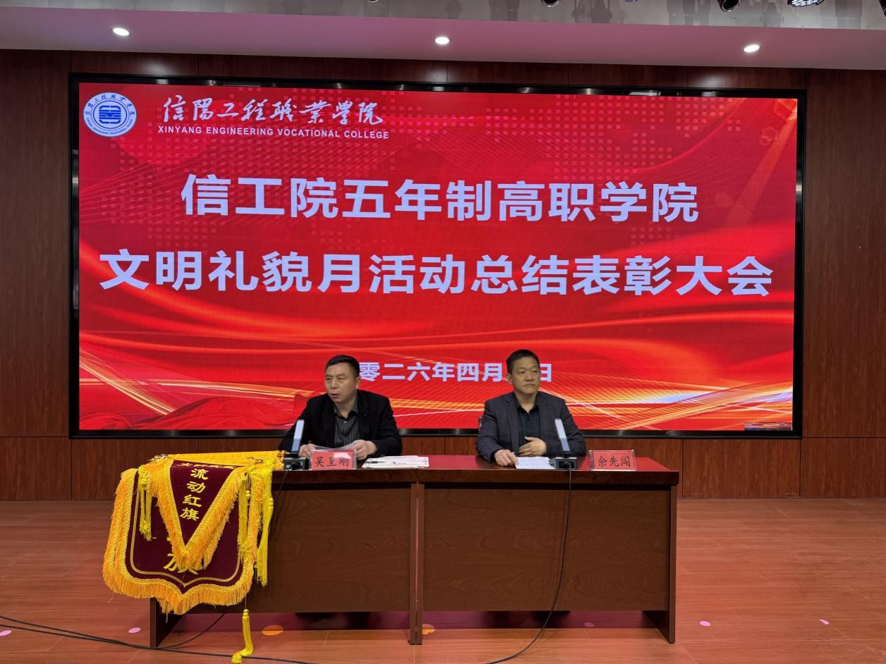 2026 年4月3日,信工院五年制高职学院“学雷锋树新风 文明礼仪伴我行”文明礼貌月活动总结表彰大会隆重举行。大会全面回顾活动成果,表彰先进典型,凝聚文明力量,进一步推动校园精神文明建设走深走实。