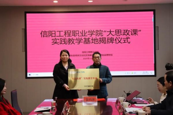 11月25日下午,信阳工程职业学院与固始县博物馆共建“大思政课”实践教学基地签约暨揭牌仪式顺利举行。此次活动标志着学校在推动思政教育改革创新方面迈出重要一步,通过整合地方文化资源,探索形成“行走的思政课”育人新模式,为培养担当民族复兴大任的时代新人注入新动能。