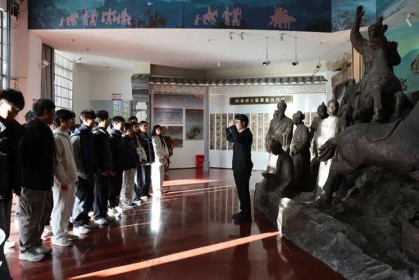 信阳工程职业学院常务副校长杨金国,党委宣传部、马克思主义学院、汽车工程学院相关负责人及教师代表,固始县根亲文化和文物事务中心纪检组长闻俊、固始县博物馆党支部书记兼馆长龚平等出席仪式。杨金国在讲话中谈到,共建实践教学基地是推进“大思政课”建设的具体举措。固始作为“唐人故里、闽台祖地”,红色文化与根亲文化底蕴深厚,为思政教育提供了丰富生动的教学资源。双方应坚持“资源共享、实践共促、发展共赢”原则,共同打造立体化思政教育资源库,构建分层分类的实践教学体系,推动本土文化资源有效转化为育人优势,引导学生坚定理想信念、厚植家国情怀。
