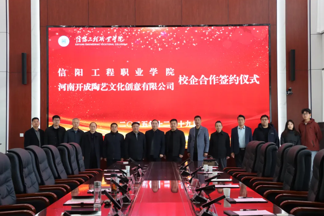 12月19日上午,我校与河南开成陶艺文化创意有限公司校企合作签约仪式顺利举行。河南开成公司董事长胡启成、行政中心总经理尹春刚等企业代表,河南世纪教育集团总经理、信阳工程职业学院副理事长张东斌,信阳工程职业学院校长黄功学、常务副校长杨金国等校领导出席仪式,共同见证这一产教融合赋能非遗传承的重要时刻。