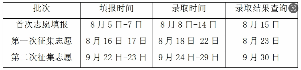 首次志愿填报:8月5日9:00-8月7日17:00