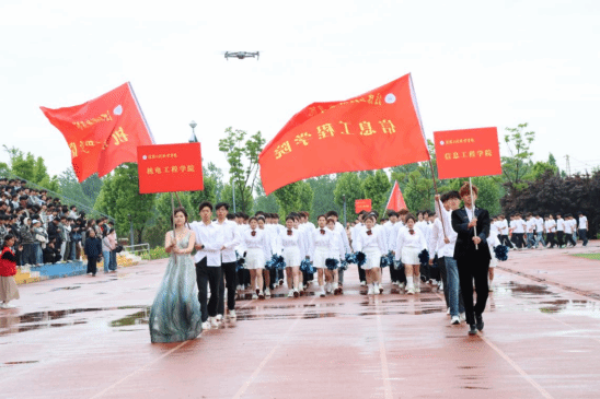 上午8时30分,伴随着激昂的运动员进行曲,开幕式正式开始。国旗方队、校旗方队、会徽方队依次庄严入场,青年先锋营方阵、各班级方阵、裁判员方阵紧随其后。各方阵步伐整齐、口号嘹亮,展现出信工学子朝气蓬勃、昂扬向上的精神风貌。