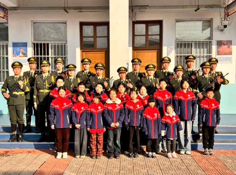 为打破交流壁垒,让沟通更顺畅,国旗班队员们提前向手语老师请教,学会了“你好”“加油”“很高兴认识你”等基础手语,在活动现场主动与孩子们交流。此刻,这些简单的手势成为了最温暖的语言:一个赞许的眼神,传递着认可与鼓励;一次轻轻的击掌,定格着默契与亲近;一段笨拙却真诚的手语对话,让平日里在无声世界里默默成长的孩子们,感受到了前所未有的关注与温暖。他们渐渐褪去羞涩,不再躲闪,纷纷主动拉着队员们的手,有的用活泼的肢体动作分享自己的快乐,有的小心翼翼地戴上礼兵帽、握住礼兵枪,兴奋地与大哥哥们合影留念。