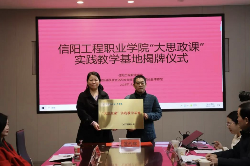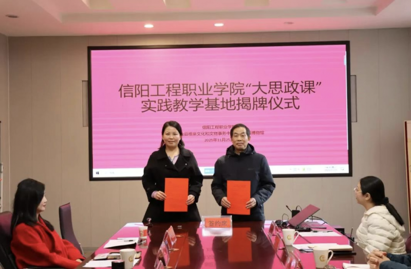 11月25日下午,信阳工程职业学院与固始县博物馆 “大思政课”实践教学基地签约暨揭牌仪式举行。此次活动标志着该校打破传统课堂壁垒,将思政教育与地方特色文化深度融合,创新推出“行走的思政课”育人新模式,为培养担当民族复兴大任的时代新人注入强劲动力。