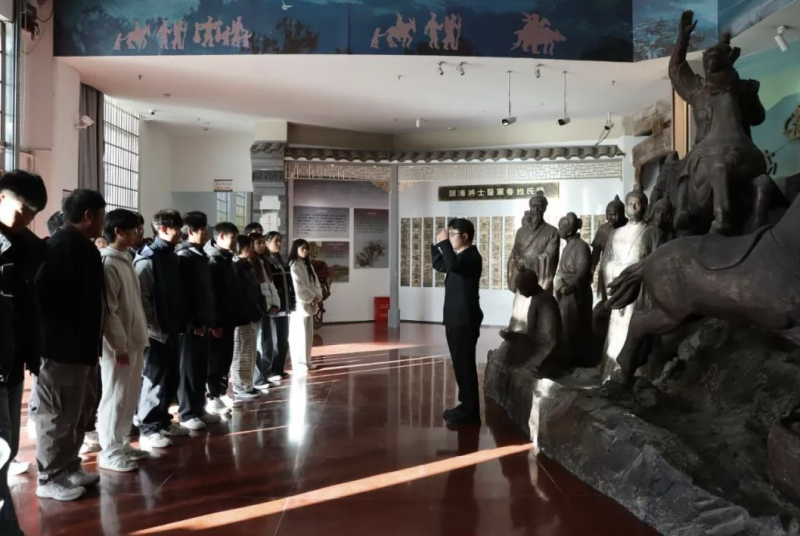 仪式结束后,学校师生在讲解员的引导下,参观了博物馆常设展览及“根亲族谱书画展”。马克思主义学院青年教师朱良晨以展厅为课堂,以馆内历史文物、雕塑为教具,开展了一场别开生面的现场教学。他围绕根亲文化与民族认同主题,生动讲述了1300多年前固始先民南迁、繁衍发展的历史,阐释了固始作为闽台同胞和海外侨胞祖地的深厚渊源,引导学生深刻理解中华文化的连续性与中华民族共同体意识。“以前觉得思政理论很抽象,现在通过触摸文物、聆听历史,真切感受到了民族文化的厚重和家国情怀的力量。” 参与活动的学生纷纷表示,这种沉浸式、行走式的教学模式,让深刻的思想变得生动鲜活,进一步深化了对铸牢中华民族共同体意识的认识。