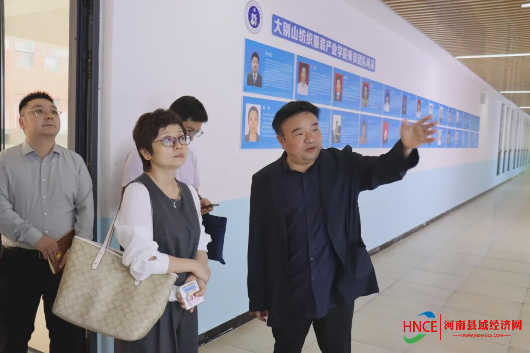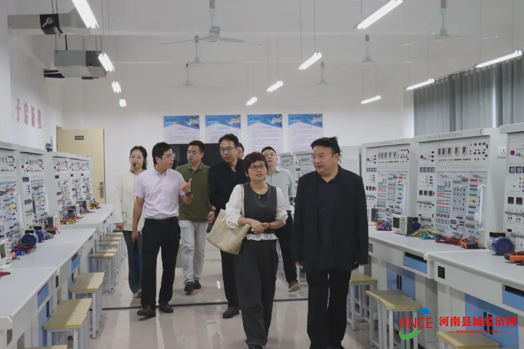 於丽一行实地参观了学校国机产业学院、纺织服装产业学院。张东斌介绍了学校在产教融合与实训基地建设方面的整体规划与成效,张民生详细讲解了各实训室的教学开展、设备配置及人才培养成果。於丽对学校紧密对接产业需求、深化专业建设、培养高素质技术技能人才的实践给予高度评价,认为学校实训教学体系完善、产教融合基础扎实。