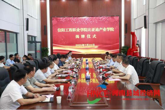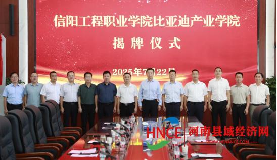 河南县域经济网讯 7月22日上午,信阳工程职业学院与比亚迪股份有限公司共建的“比亚迪产业学院”揭牌仪式隆重举行。河南省教育厅党组成员、副厅长张国强,省教育厅职成处处长张家成,全国新能源智能制造汽车行业产教融合共同体理事长单位、河南工业和信息化职业学院校长史先进,比亚迪股份有限公司人力资源处校企合作总监杨双喜,信阳市教体局局长林长,固始县委常委、常务副县长王廷辉,固始县政协副主席、信阳工程职业学院党工委副书记李涛等省市县各级领导及企业代表出席仪式,仪式由李涛主持。
