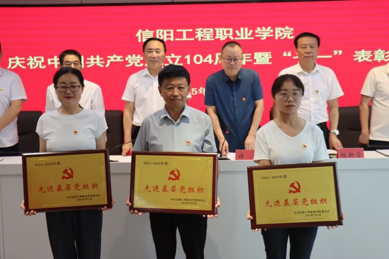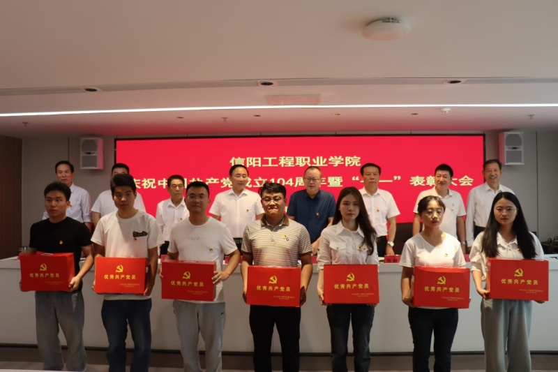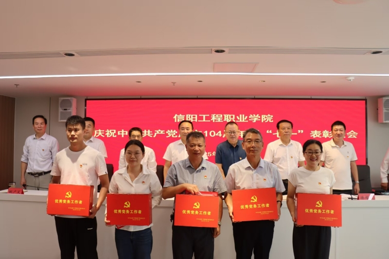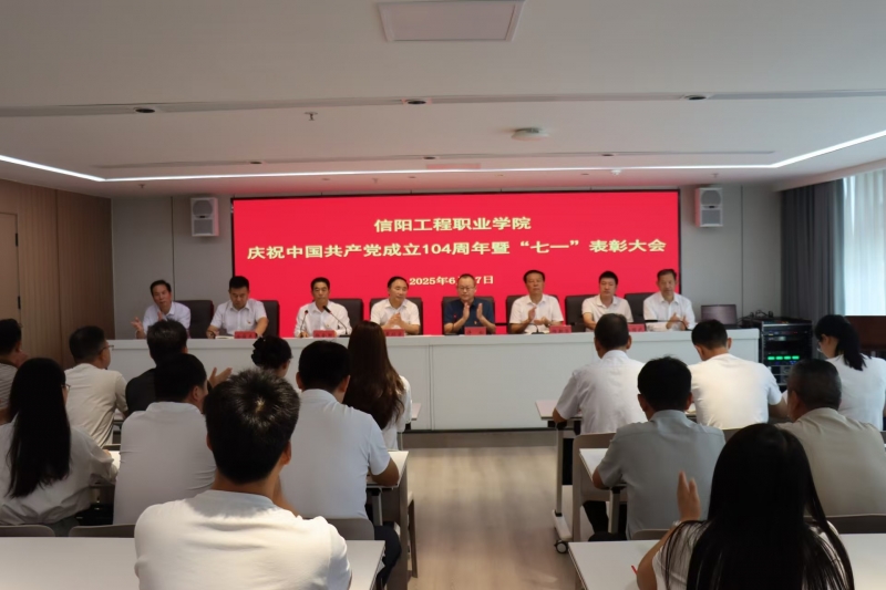 为表彰先锋模范,弘扬榜样精神,进一步凝聚全校教职工砥砺奋进、育德育才的磅礴力量,6月27日上午,信阳工程职业学院举行庆祝中国共产党成立104周年暨“七一”表彰大会。学校党委副书记、校长黄功学出席大会,并为全体参会人员讲授了一堂深刻而生动的“七一”主题党课。学校领导班子成员杨金国、杨新学、徐俊杰等,以及中层干部和全体教职员工齐聚一堂,共同回顾党的光辉历程,表彰先进典型,展望学校发展的美好未来。会议由党委副书记、纪委书记许松主持。
