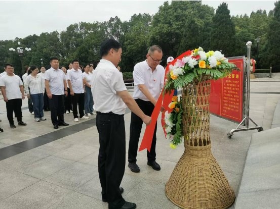 踏入纪念园,松柏苍翠,庄严肃穆的氛围扑面而来。在巍峨矗立的黄麻起义和鄂豫皖苏区革命烈士纪念碑前,全体党员同志整齐列队,庄严肃立,向革命烈士敬献花篮。黄功学、许松缓步迈向纪念碑前,仔细整理寄托着深切缅怀之情的花篮缎带,每一个动作都饱含着对先烈的敬重。随后,全体人员深深鞠躬致敬,静默的氛围中,仿佛能听见历史的回响,先烈们浴血奋战的场景在众人脑海中浮现。
