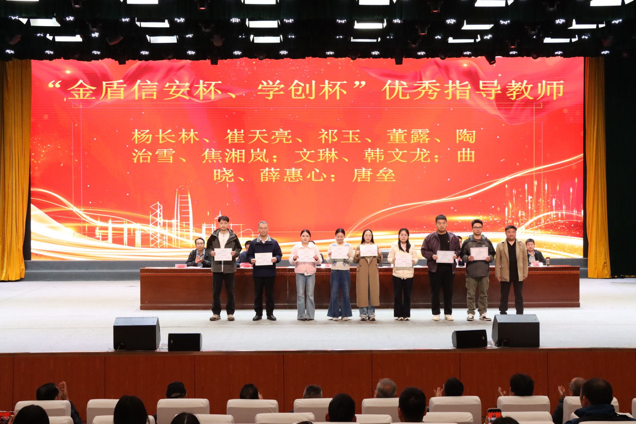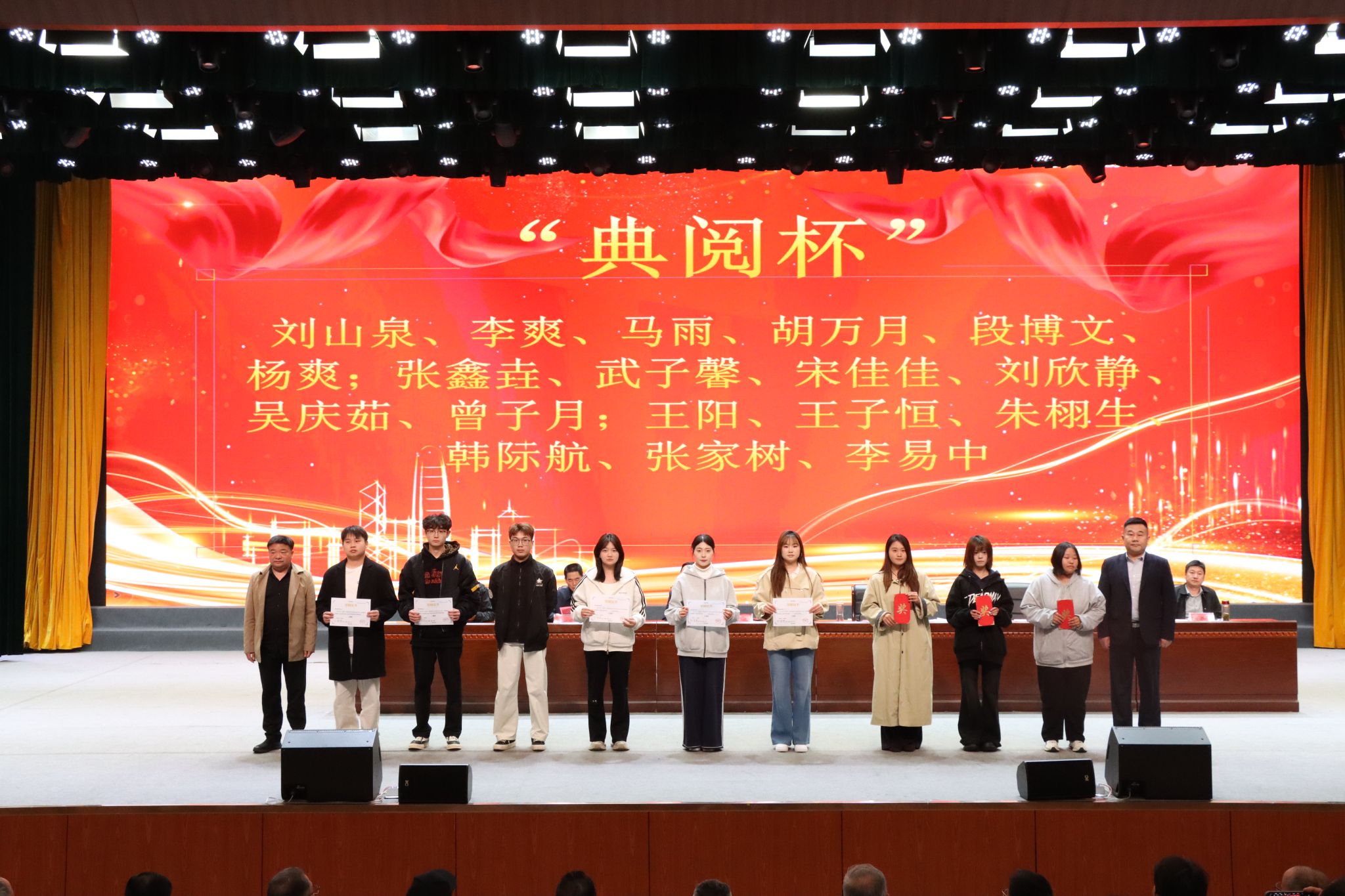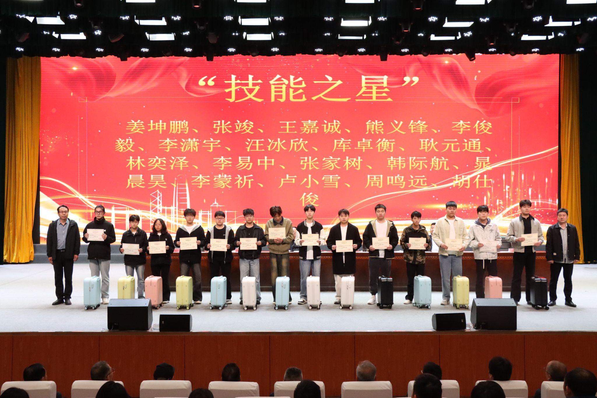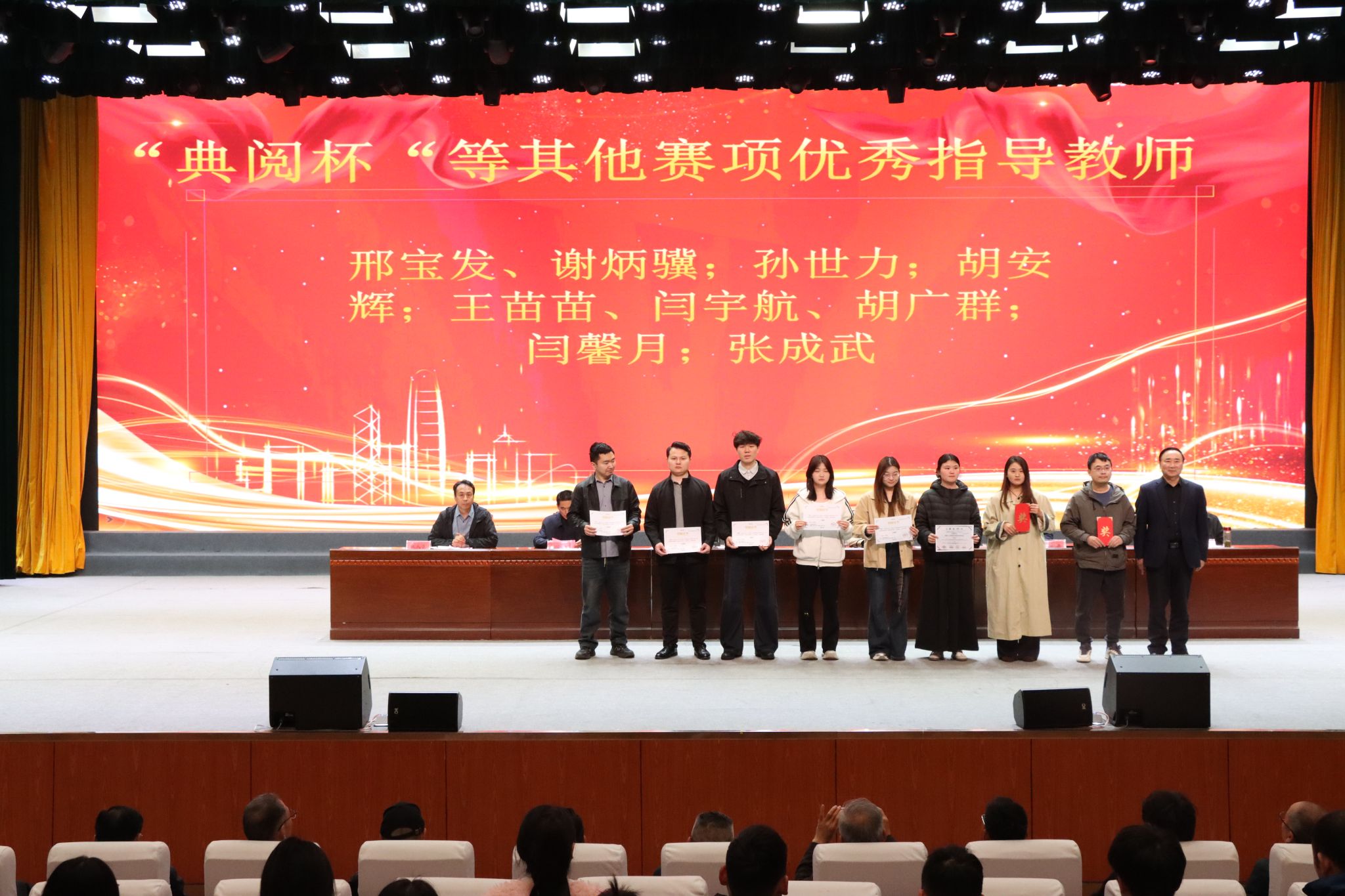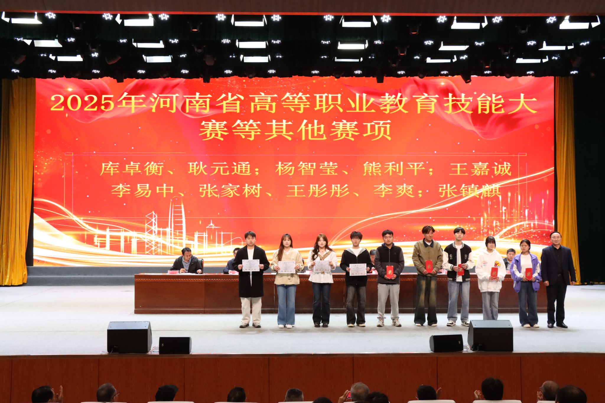 启动仪式上,张东斌宣读了《信阳工程职业学院关于对2025-2026学年竞赛获奖师生的表彰决定》,对在各类竞赛中获奖的239名师生予以表彰和奖励。校领导为省级、国家级赛事获奖学生及指导教师颁奖,号召全体师生以先进为榜样,锤炼技能、争创佳绩。