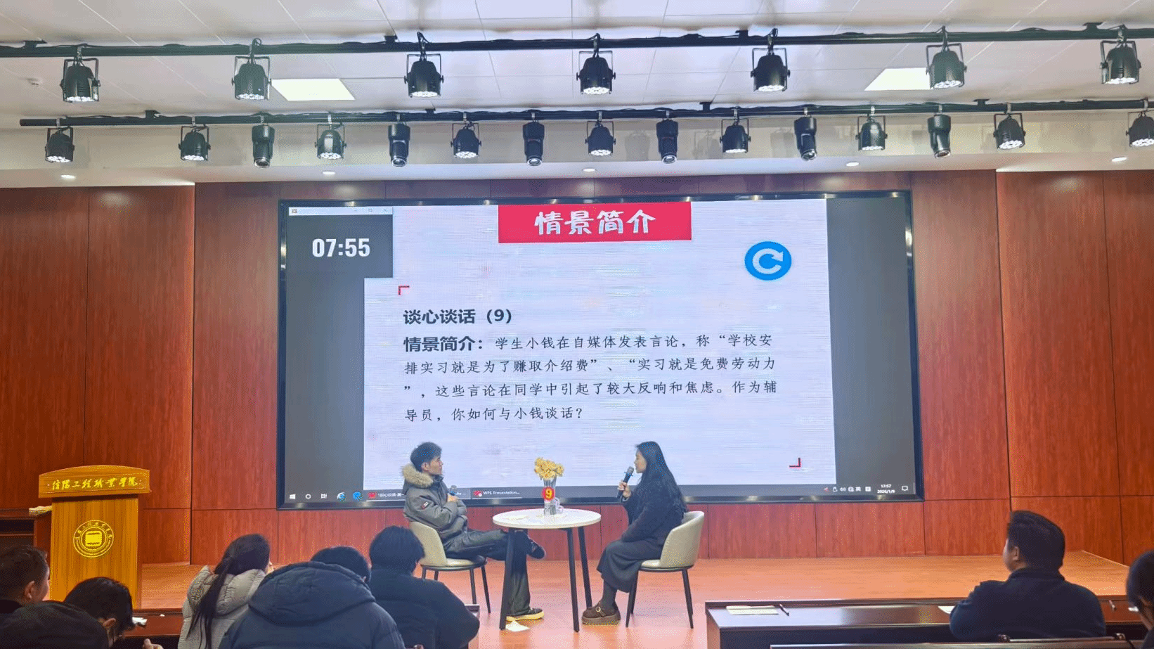 决赛谈心谈话环节采用情景模拟形式,还原学生成长过程中可能遇到的思想困惑、学业焦虑、人际矛盾、就业迷茫等真实场景。参赛辅导员以学生为中心,循循善诱倾听心声,情理兼顾疏导困扰,在面对面的交流中精准把握学生需求,用温暖的语言、科学的方法化解问题,展现出“知心朋友”与“人生导师”的双重担当,赢得现场阵阵掌声。
