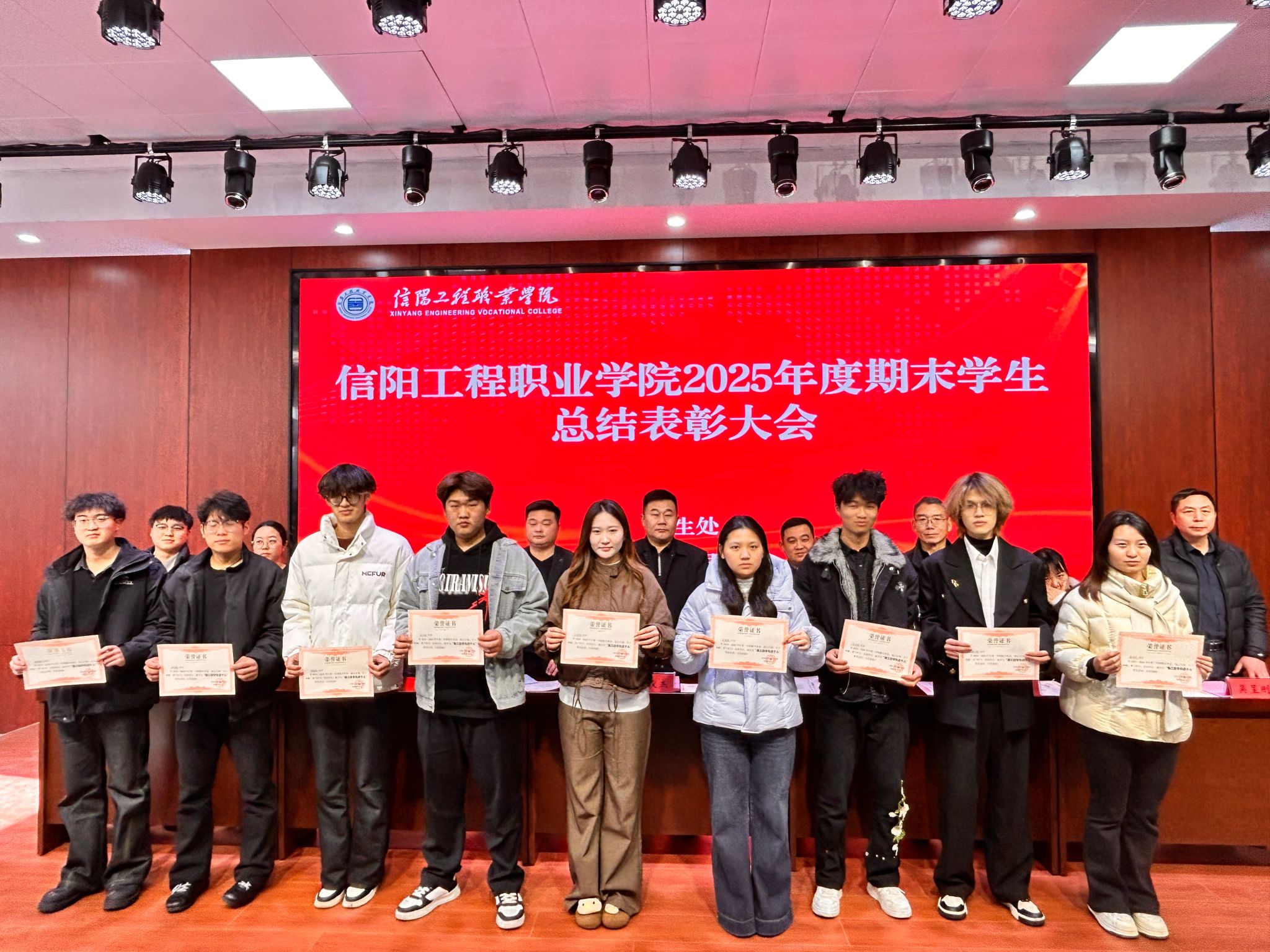 徐俊杰作总结讲话。他立足学校整体工作部署,对2025年度学生工作的成果予以高度评价,向受表彰的学生表示热烈祝贺,向辛勤付出的学管负责人和辅导员们表示衷心感谢。他强调,要以此次表彰为契机,坚持问题导向,精准查缺补漏,持续优化学生工作体系;希望全体学子以先进为标杆,脚踏实地、奋勇争先,在成长道路上书写精彩篇章;要求学管队伍进一步强化责任担当,提升工作实效,为学校高质量发展筑牢学生工作根基。