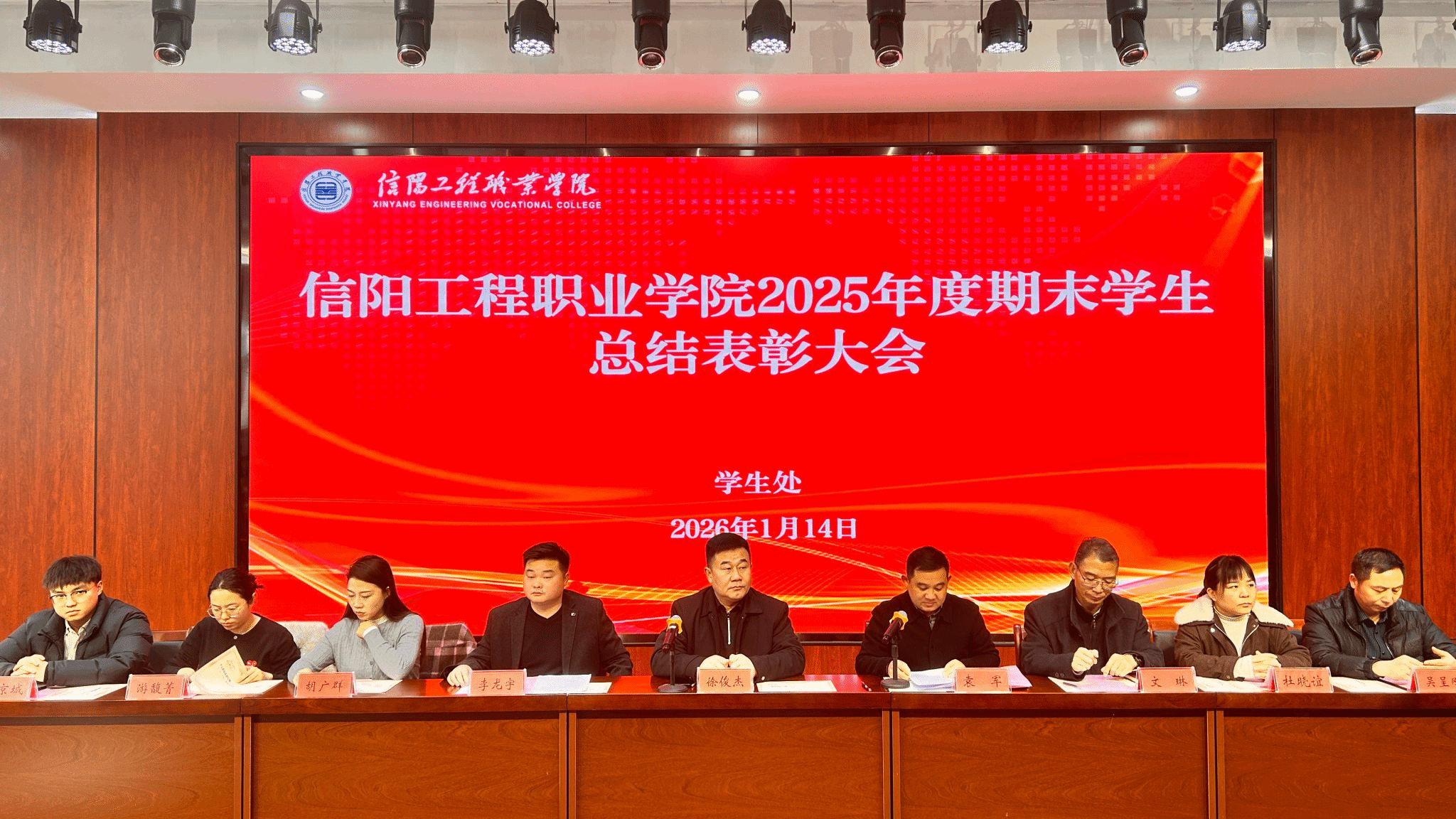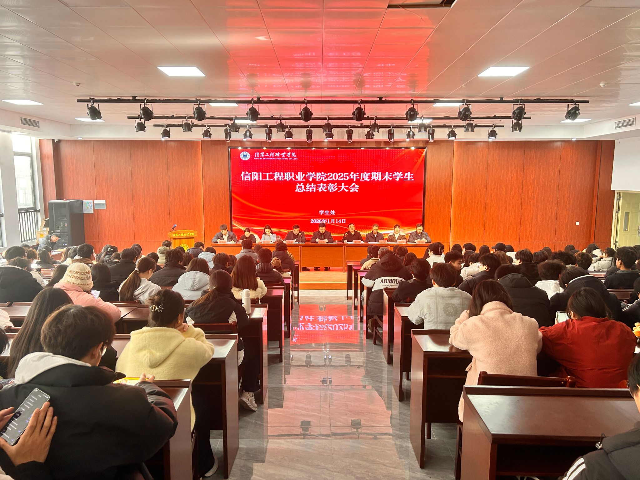 为表彰先进、树立榜样,凝聚全校师生奋进力量,1月14日下午,我校2025年度期末学生总结表彰大会在毕昇楼演艺大厅隆重举行。副校长徐俊杰出席,各学院学管负责人、全体辅导员及学生代表齐聚一堂,共同见证荣耀时刻。大会由学生处处长袁军主持。