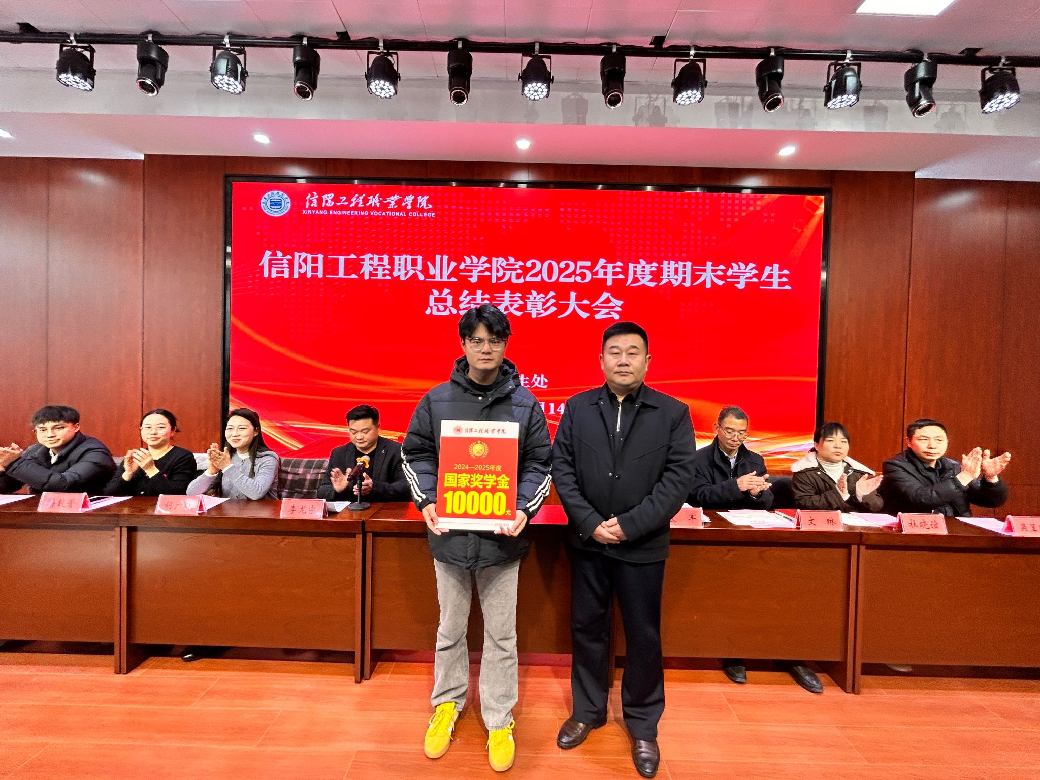 大会伊始,学生处副处长李龙宇宣读了2025年度期末学生先进典型表彰通报,明确了表彰名单,对获奖学生的优异表现给予充分肯定。随后,主席台就坐领导为获奖学生和集体代表颁奖,台下响起阵阵热烈掌声,向获奖学生致以诚挚祝贺。